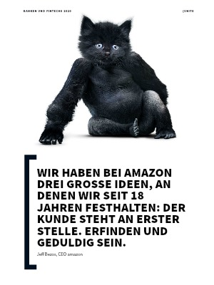 Zitat: "Wir haben bei Amazon drei große Ideen, an denen wir seit 18 Jahren festhalten: Der Kunde steht an erster Stelle. Erfinden und geduldig sein.", Jeff Bezos, CEO amazon