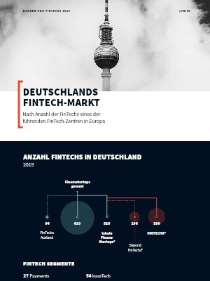 Deutschland gilt als eines der größten Zentren der europäischen FinTech-Szene. Ende 2019 waren hierzulande 610 Finanz-Startups ansässig. Davon zählten 330 Unternehmen zu den Core FinTechs, 196 zu den Anbietern finanzaffiner Dienstleistungen (Beyond FinTechs) und 84 zu den ausländischen Anbietern.