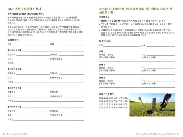 2023 년 GLENVIEW PARK 골프 클럽 정기 티타임 요일 / 시간 선호도 시트
