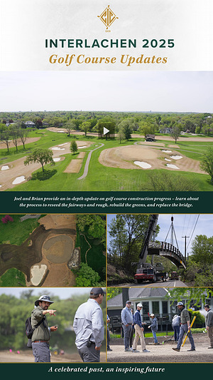 Joel and Brian provide an in-depth update on golf course construction progress – learn about the process to reseed the fairways and rough , rebuild the greens , and replace the bridge .