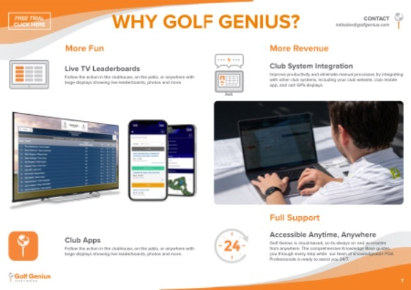 Golf Genius is cloud-based , so its always on and accessible from anywhere . The comprehensive Knowledge Base guides you through every step while our team of knowledgeable PGA Professionals is ready to assist you 24 / 7 .