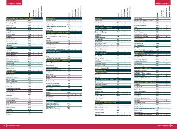 W30 Pinchful Salt Z36 • • • • Smoked Bishop B32 • • • • Spice Kitchen C48 • • • • Yoyo Laos Sauce D30 • • • • HOMEWARES BIC EZ Reach Broadlands Pottery Buckle & Hide Cheng Yan Studio Crystal Buddha Gifts Galore Hawkstone Handmade Jardin De France L V Bespoke Leaf Gifts Little Moments Melts Mermaid Marys Minky Homecare Re-Wrap-It Selbrae House Soctopus Sun Leisure Xapron