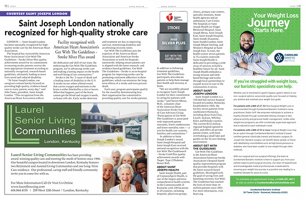 “ We are incredibly pleased to recognize Saint Joseph London for their commitment to caring for patients with stroke,” said Steven Messe, M. D., volunteer chair of the American Heart Association Stroke System of Care Advisory Group.“ Participation in Get With The Guidelines is associated with improved patient outcomes, fewer readmissions and lower mortality rates— a win for health care systems, families and communities.”
