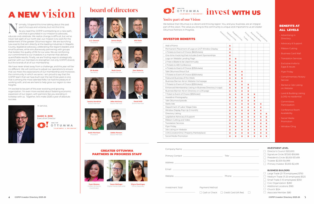 We believe that Ottumwa is a vibrant and thriving region. You, and your business, are an integral part of this vision. The value you bring to this community is unique and important to us at Greater Ottumwa Partners in Progress.