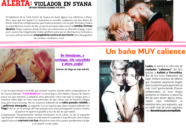 Ladza se suma a la colección de ciudades "calientes" del foro gracias a Ashbel y Veronikha, dos de los locos habitantes del lugar. Ambos intentos de villanos que muestran desinterés fingido ante su entorno para aparentar se más "cool" que los demás. El joven exhibicionista no tuvo ningún problema en bañarse a plena luz del día para atraer alguna presa, ¿quién cayó redondita? La vanidosa Vero, por supuesto, que no tardó más de unos segundos en desvestirse para acompañarlo.