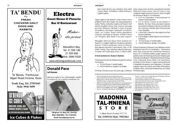 " Għajnun ", St . Mary Str ., Xewkija Mob : 99859683 Tel : 21565592 Email : donaldp @ go . net . mt