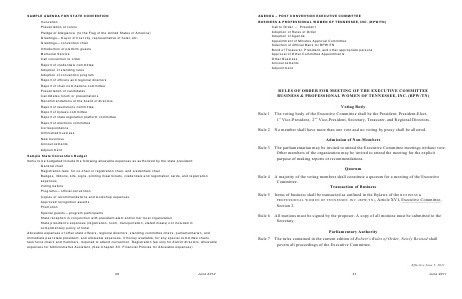 BUSINESS & PROFESSIONAL WOMEN OF TENNESSEE, INC.( BPW / TN) Call to Order-- President Adoption of Rules of Order Adoption of Agenda Appointment of Minutes Approval Committee Selection of Official Bank for BPW / TN Bond of Treasurer, President, and other appropriate persons Approval of Other Committee Appointments Other Business Announcements Adjournment