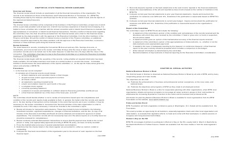 9. Compare current year financial statements to prior year financial statements. Inquire and document the justification for variances over $ 250 and 10 %. Determine if the justification is reasonable based on BPW / TNʼs activities.