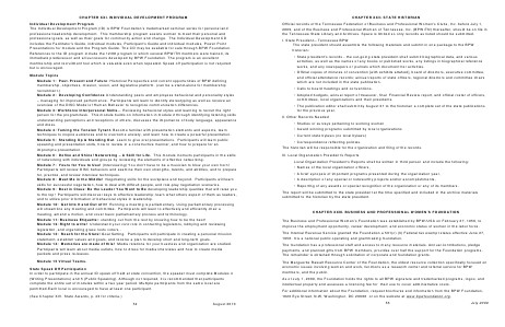 Individual Development Program The Individual Development Program( ID) is BPW Foundationʼs trademarked seminar series for personal and professional leadership development. This membership program assists women to meet their personal and professional goals, as well as their goals for community action and change. The Individual Development CD includes the Facilitatorʼs Guide, individual modules, Participantʼs Guide and individual modules, Power Point Presentations for module and the Program Guide. The CD may be available for sale through BPW Foundation. References to the ID program include the 12 / 08 program in which several BPW / TN members were trained, its immediate predecessor and all successors developed by BPW Foundation. The program is an excellent membership and recruitment tool which is valuable even when repeated. Speak off participation is not required but is encouraged.