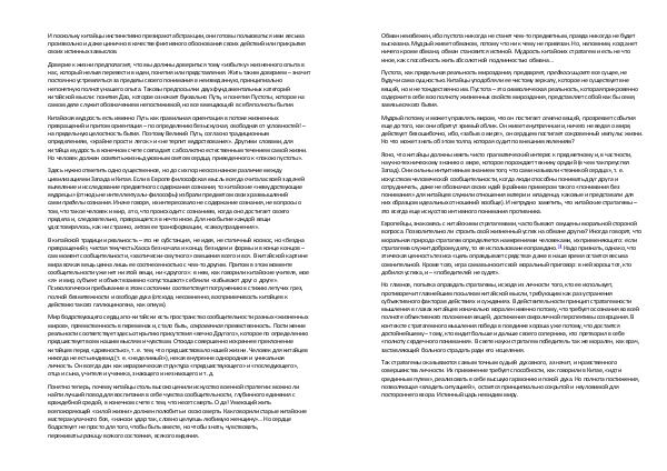 Ясно, что китайцы должны иметь чисто прагматический интерес к предметному и, в частности, научно-техническому знанию о мире, которое порождает технику орудий( в чем так преуспел Запад). Они сильны интуитивным знанием того, что сами называли « техникой сердца », т. е. искусством человеческой сообщительности, когда люди способны понимать друг друга и сотрудничать, даже не обозначая своих идей( крайним примером такого « понимания без понимания » для китайцев служили отношения матери и младенца, каковые и представали для них образцом идеальных отношений вообще). И нетрудно заметить, что китайские стратагемы – это всегда еще искусство интимного понимания противника.