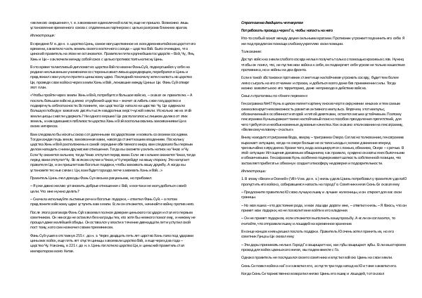 – Сначала используйте льстивые речи и богатые подарки, – ответил Фань Суй. – а потом предложите вэйскому царю уступить вам земли. Если он откажется, начинайте войну против него.
