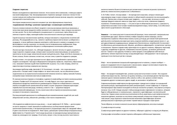реальность». Человек живет в мире мифов и не может жить иначе, так как абсолютная истина