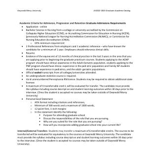 Academic Criteria for Admission , Progression and Retention Graduate Admissions Requirements