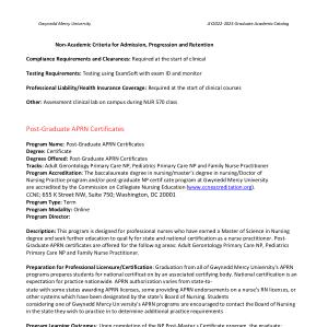 Program Name : Post-Graduate APRN Certificates Degree : Certificate Degrees Offered : Post-Graduate APRN Certificates Tracks : Adult Gerontology Primary Care NP , Pediatrics Primary Care NP and Family Nurse Practitioner Program Accreditation : The baccalaureate degree in nursing / master ’ s degree in nursing / Doctor of Nursing Practice program and / or post-graduate NP certificate program at Gwynedd Mercy University are accredited by the Commission on Collegiate Nursing Education