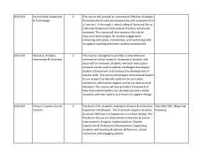 3 This course will provide an overview of effective strategies for leadership of instructional practices and assessment for all learners . A thorough understanding of Universal Design , Culturally Responsive Instructional Practices will also be reviewed . This course will also examine the role of classroom technologies for student engagement , enhancing instruction , remediation , and reinforcing skills to support teaching and foster student achievement .