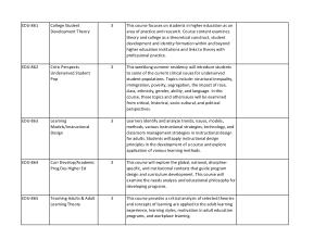 3 Learners identify and analyze trends , issues , models , methods , various instructional strategies , technology , and classroom management strategies in instructional design for adults . Students will apply instructional design principles in the development of a course and explore application of various learning methods .