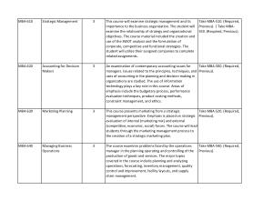 This course will examine strategic management and its importance to the business organization . The student will examine the relationship of strategy and organizational objectives . The course material included the creation and use of the SWOT analysis and the formulation of corporate , competitive and functional strategies . The student will utilize their assigned companies to complete related assignments . |