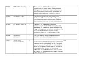 This is the final course of the three courses for the development of the evidence based scholarly project in advanced practice nursing . The focus is the completion , defense and dissemination of the evidence based project . |