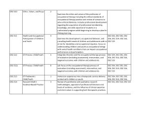 OSC 504 , OSC 505 , OSC Examines the development , occupational behavior , and 506 , OSC 514 , OSC 516 , prevailing health needs of children and adolescents with or OSC 519 at risk for disabilities and occupational injustice . Focus on understanding children and youth as occupational beings with varied health conditions that can impact occupational performance and participation .