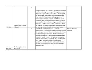 Implementing policies at the local or national level can be an effective strategy for change at the population level . This course begins with a review of how policies regulate the systems that affect public health domestically and internationally . The structural challenges posed by inequities and racism to achieving health for all will be considered . With this understanding , the policy-making process will be discussed and strategies to build coalitions to improve health outcomes will be proposed . Students will evaluate the impact of policies on public health and advocate for policies that will improve health equity .