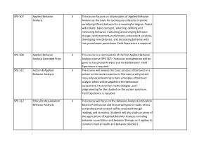 3 This course is a continuation of the first Applied Behavior Analysis course ( SPE 507 ). Particular consideration will be given to Functional Analysis and Verbal Behavior . Field Experience is required .