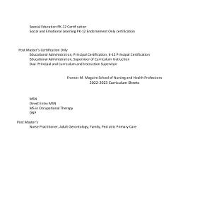 Frances M . Maguire School of Nursing and Health Professions 2022-2023 Curriculum Sheets