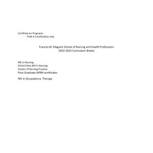 Frances M . Maguire School of Nursing and Health Professions 2022-2023 Curriculum Sheets