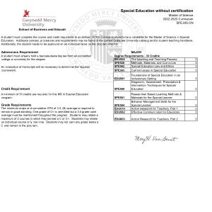 A student must complete the course and credit requirements as defined on this curriculum sheet to be a candidate for the Master of Science in Special Education . Additional policies , procedures and requirements may be found in the current Graduate University Catalog and / or student teaching handbook . Additionally , the student needs to be approved on an individual basis by the program director .