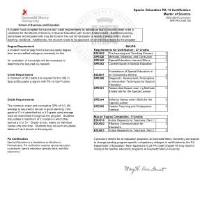 Special Education program with PK-12 Certification . |