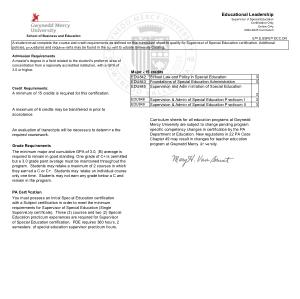 EDLE . SSPED . DCC . ON A student must complete the course and credit requirements as defined on this curriculum sheet to qualify for Supervisor of Special Education certification . Additional policies , procedures and requirements may be found in the current Graduate University Catalog .