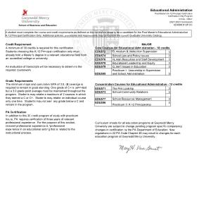 A student must complete the course and credit requirements as defined on this curriculum sheet to be a candidate for the Post Master ' s Educational Administration K-12 Principal Certification Only . Additional policies , procedures and requirements may be found in the current Graduate University Catalog .