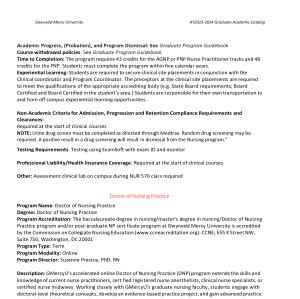 Program Name : Doctor of Nursing Practice Degree : Doctor of Nursing Practice Program Accreditation : The baccalaureate degree in nursing / master ’ s degree in nursing / Doctor of Nursing Practice program and / or post-graduate NP certificate program at Gwynedd Mercy University is accredited by the Commission on Collegiate Nursing Education ( www . ccneacreditation . org ). CCNE ; 655 K Street NW , Suite 750 ; Washington , DC 20001 Program Type : Term Program Modality : Online Program Director : Suzanne Prestoy , PhD , RN