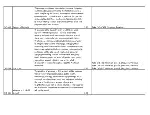 This course is the student ' s entry level fifteen week supervised field experience . This field experience requires a minimum of 100 hours on site with 40 % of these hours being in face to face contact with clients . This field experience provides students the opportunity to integrate professional knowledge and apply their counseling skills in real life situations . Professional issues , legal issues and ethical behavior related to the counseling profession will be addressed . Emphasis is placed on applying counseling skills on the individual and group levels . Ninety minutes per week of synchronous group supervision is required in this course . For a full description of expectations please see the Practicum Handbook .