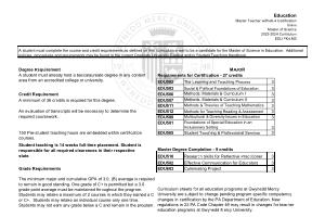 A student must complete the course and credit requirements as defined on this curriculum sheet to be a candidate for the Master of Science in Education . Additional policies , procedures and requirements may be found in the current Graduate University Catalog and / or Student Teaching Handbook .