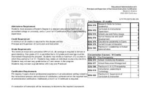 Credit Requirement A minimum of 39 credits is required for this degree and the Principal and Supervisor of Curriculum and Instruction