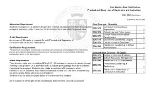 Post Masters Dual Certification- Principal and Supervisor of Curriculum and Instruction