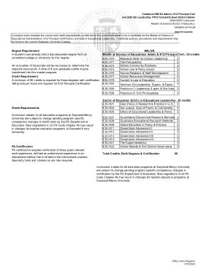 Master of Science in Educational Admin & K12 Principal Cert .: 30 credits |
