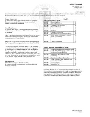 Curriculum sheet for the PG school counseling certificate program at Gwynedd Mercy University is subject to change pending program specific competency changes in certification by the PA Department of Education . New regulations in 22 PA Code Chapter 49 may result in changes for school counseling education programs at Gwynedd Mercy University .