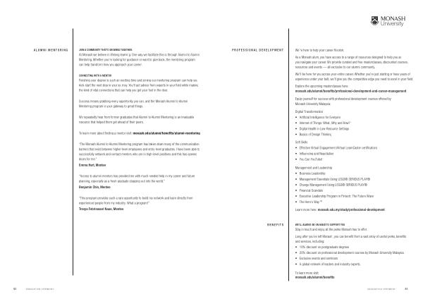 To learn more about finding a mentor visit: monash. edu / alumni / benefits / alumni-mentoring