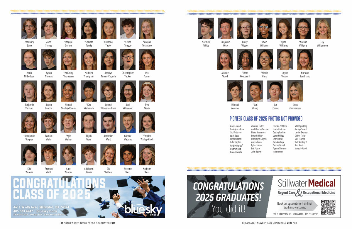 Adria Spaulding Jocelyn Swann * Landen Swanson Korbyn Taylor Kaci Thomas Cody Vandegrift Onyx Ward Abbigale Wyrick |