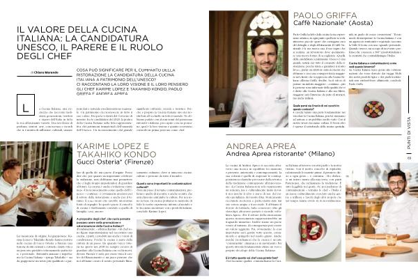 COSA PUÒ SIGNIFICARE PER IL COMPARTO DELLA RISTORAZIONE LA CANDIDATURA DELLA CUCINA ITALIANA A PATRIMONIO DELL ’ UNESCO ? CI RACCONTANO LA LORO VISIONE E IL LORO PENSIERO GLI CHEF KARIME LOPEZ E TAKAHIKO KONDO , PAOLO GRIFFA E ANDREA APREA