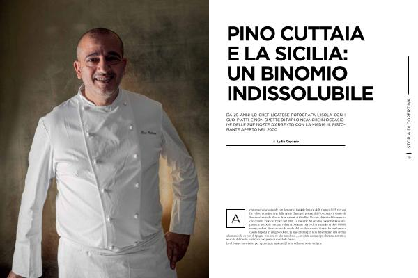 Burri, realizzata da Alberto Burri sui resti di Gibellina Vecchia, distrutta dal terremoto che colpì la Valle del Belìce nel 1968. Le macerie del vecchio paese furono compattate e ricoperte con una colata di cemento bianco. Un lenzuolo di oltre 80.000 metri quadrati che ricalcano le strade del vecchio abitato. Cuttaia ha trasformato quella tragedia in un gesto dolce, in una carezza per non dimenticare: una crema alla mandorla su pan di Spagna con liquore alla mandorla, sormontata da una riproduzione autentica in scala del Cretto, realizzata con pasta di mandorle bianca. Lo abbiamo intervistato per ripercorrere insieme 25 anni della sua storia siciliana.