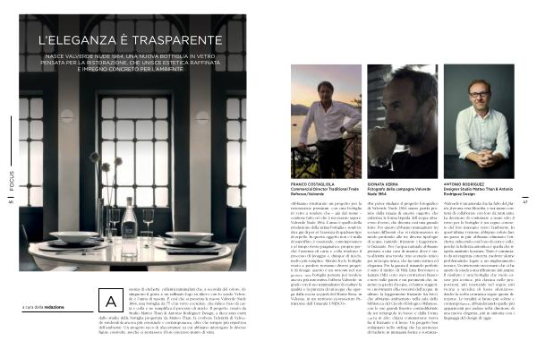 « Abbiamo strutturato un progetto per la ristorazione premium, con una bottiglia in vetro a rendere che – già dal nome – contiene tutto ciò che è necessario sapere: Valverde Nude 1964. L’ anno è quello della produzione della prima bottiglia e nude indica già di per sé l’ assenza di qualsiasi tipo di orpello. In questo oggetto non c’ è nulla di superfluo, è essenziale, contemporaneo e al tempo stesso pragmatico, proprio perché l’ assenza di carta e colla rendono il processo di lavaggio e, dunque di riciclo, molto più semplice. Mentre fra le bottiglie vuoto a perdere troviamo diversi progetti di design, questo è un unicum nel suo genere, una bottiglia pensata per rendere ancora più innovativa l’ offerta Valverde, in grado con il suo minimalismo di esaltare la qualità e la purezza di un’ acqua che sgorga dalla roccia ai piedi del Monte Rosa, in Valsesia, in un territorio riconosciuto Patrimonio dell’ Umanità UNESCO ». |