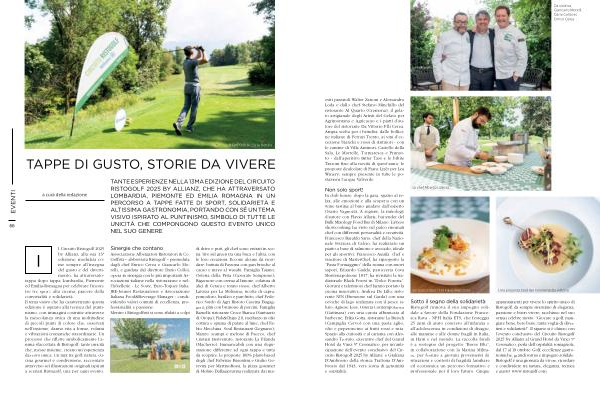 In club house, dopo la gara, spazio al relax, alle emozioni e alla scoperta con un wine tasting al buio guidato dall’ esperto Orazio Vagnozzi. A seguire, la mixology d’ autore con Flavio Allaria, bartender del Bulk Mixology Food Bar di Milano. L’ atteso showcooking ha visto sul palco rinomati chef con differenti personalità e creatività. Francesco Baraldo Sano, chef della Nazionale Svizzera di Calcio, ha realizzato un piatto a base di salmone e avocado, ideale per gli sportivi; Francesco Aquila, chef e vincitore di MasterChef, ha riproposto la“ Pasta Formaggino” della nonna con nuovi sapori; Eduardo Gadda, pasticceria Cova Montenapoleone 1817, ha rivisitato la tradizionale Black Forest in“ Dolce Foresta”. Giovani e talentuosi chef hanno portato la cucina innovativa: Andrea De Lillo, ristorante NIN( Brenzone sul Garda) con una ceviche di lago realizzata con il pesce siluro; Agnese Loss, Osteria Contemporanea( Gattinara) con una carota affumicata al barbecue; Erika Gotta, ristorante La Bursch( Campiglia Cervo) con una pasta aglio, olio e peperoncino ai frutti rossi e ruta. Spazio alla curiosità e al carisma con Alessandro Trovato, executive chef del Grand Hotel da Vinci 5 * Cesenatico, per un’ anticipazione dell’ evento conclusivo del Circuito Ristogolf 2025 by Allianz, e Giuliana D’ Ambrosio della storica Trattoria D’ Ambrosio dal 1943, vera icona di genuinità e ospitalità.