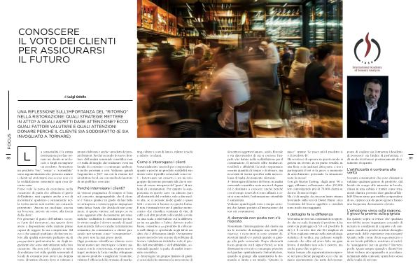 L motivazione per fare tornare un cliente in un locale o fargli ricomprare un prodotto. Promettere un prodotto“ bio”,“ senza” e“ sostenibile” sono argomentazioni che possono aiutare i clienti ad avvicinarsi, ma se poi non c’ è la soddisfazione sensoriale ogni cosa diventa vana. Forse vale la pena di esercitarsi nella creazione di piatti che abbiano il gusto dell’ infinito: sarà capitato anche a voi di incontrarne qualcuno e sicuramente nella vostra mente sarà scattato un comando perentorio:“ Ancora un cucchiaio, ancora un boccone, ancora un sorso, alla faccia della dieta”. Per generare il gusto dell’ infinito occorre l’ arte del ristoratore, ma questo deve avere a disposizione delle materie prime capaci di reggere la sua competenza. Ed ecco che quando parliamo di dare un valore alla qualità sensoriale parliamo sia di preparazioni gastronomiche, sia degli ingredienti che sono stati utilizzati nella loro creazione. Ma non solo, quando si tratta di realizzare test sulla qualità sensoriale il locale di consumo può avere una doppia veste: diventare il teatro dove si valutano i propri elaborati e anche i prodotti dei propri fornitori. Perché secondo le nuove frontiere dell’ analisi sensoriale scientifica non c’ è nulla di meglio che realizzare i test sui luoghi di consumo o comunque ambienti molto prossimi a essi. Vediamo quindi l’ argomento a 360 °, sia con la visione del produttore food, sia con quella del gestore di un pubblico esercizio.