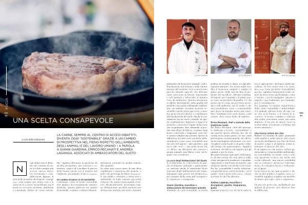 LA CARNE, SEMPRE AL CENTRO DI ACCESI DIBATTITI, DIVENTA OGGI“ SOSTENIBILE” GRAZIE A UN CAMBIO DI PROSPETTIVA NEL PIENO RISPETTO DELL’ AMBIENTE, DEGLI ANIMALI E DEL LAVORO UMANO. LA PAROLA A GIANNI GIARDINA, ERRICO RECANATI E ANDREA LAGANGA, ASSOCIATI DI AMBASCIATORI DEL GUSTO egli ultimi anni il dibattito sul consumo di carne si è fatto sempre più