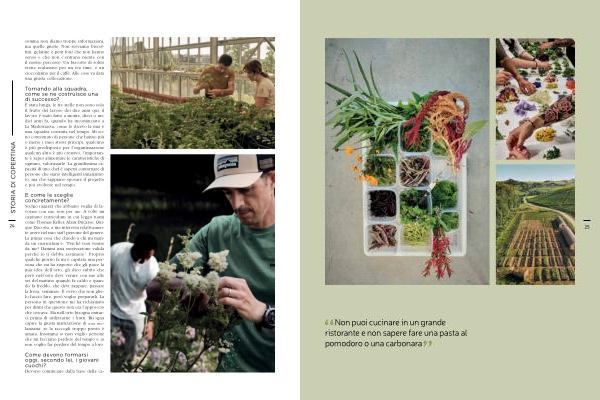 Scelgo ragazzi che abbiano voglia di lavorare con me, non per me. A volte mi capitano curriculum in cui leggo nomi come Thomas Keller, Alain Ducasse, Quique Dacosta, a me interessa relativamente avere nel mio staff persone del genere. La prima cosa che chiedo a chi mi manda un curriculum è:“ Perché vuoi venire da me? Dammi una motivazione valida perché io ti debba assumere”. Proprio qualche giorno fa mi è capitata una persona che mi ha risposto che gli piace la mia idea dell’ orto, gli dico subito che però nell’ orto devi venire con me alle sei del mattino quando fa caldo e quando fa freddo, che devi zappare, passare la fresa, seminare. È ovvio che non glielo faccio fare, però voglio prepararli. La persona in questione mi ha richiamato per dirmi che questo non era l’ approccio che cercava. Ma nell’ orto bisogna entrarci prima di utilizzarne i frutti. Bisogna capire la giusta maturazione di una melanzana: se la raccogli troppo presto è amara. Insomma io non voglio persone che mi facciano perdere del tempo e io non voglio far perdere del tempo a loro.