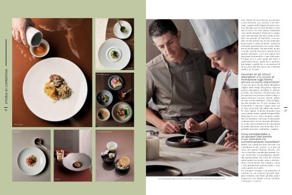 tena. Partire da una trattoria, poi passare a una brasserie, per arrivare a un ristorante, magari nella brigata di pasticceria. Cioè bisogna avere le basi di tutto se vuoi fare il cuoco o lo chef. Anche i banchetti sono molto formativi. Il mio iter è cominciato nel ristorante dei miei nonni, poi ho fatto un periodo di banchetti, sono andato in una pasticceria, ho incominciato piano piano a salire di livello, quindi un ristorante gastronomico ma senza stella, poi in un ristorante con una stella, in uno con due, perché non puoi cucinare in un grande ristorante e poi non sapere fare una pasta al pomodoro o una carbonara. È lunga, poi ci sono quelli più bravi e quelli meno bravi, quelli che ci mettono più tempo e quelli che ce ne mettono di meno, però alla fine non è che si diventa medico in 10 anni.