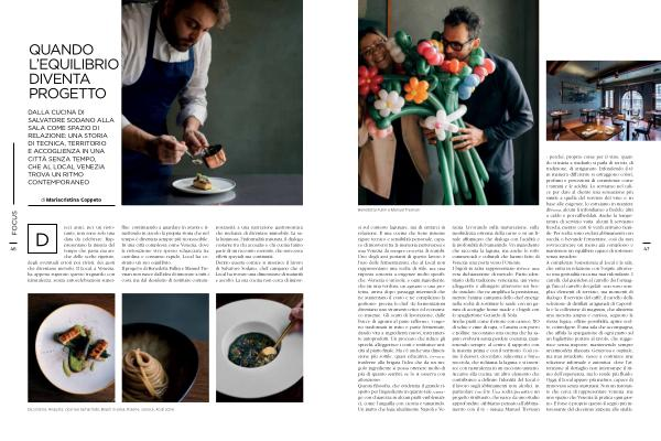 46 flue, continuando a guardare in avanti e rimettendo in circolo la propria storia che nel tempo è diventata sempre più riconoscibile. In una città complessa come Venezia, dove la ristorazione vive spesso schiacciata tra cartolina e consumo rapido, Local ha costruito un suo equilibrio. Il progetto di Benedetta Fullin e Manuel Trevisan non nasce dall’ idea di innovare a tutti i costi, ma dal desiderio di restituire contem- ieci anni, per un ristorante, non sono solo una