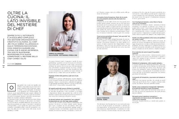 ristorante? I ragazzi che escono dalle scuole non sono pronti ad affrontare questo mondo, pensano ancora che basti avere la passione per la cucina per poter aprire un ristorante. Troppo spesso, infatti, si vedono giovani con talento ma non motivati perché privi della pazienza utile a imparare tutto quello che serve per avere una visione completa. Sono convinta che la soluzione sia modernizzare il sistema e le materie scolastiche, anche la parte di economia.